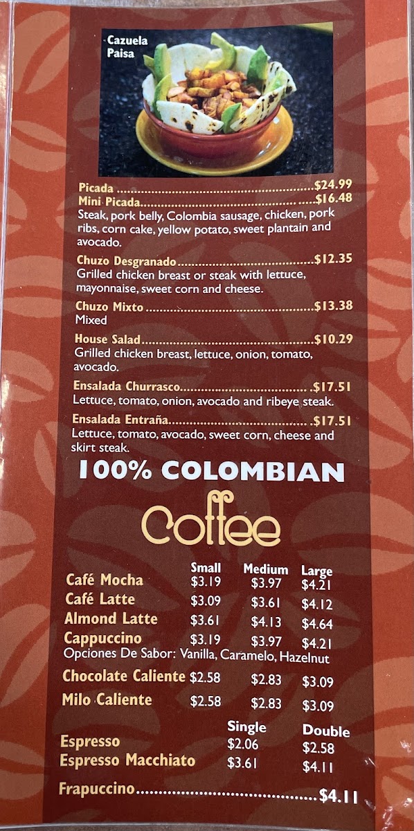 The menu at Cafe & Sabor Bakery & Restaurant offers a comfortable blend of traditional Colombian flavors and casual dining. It features a range of simple yet satisfying dishes—from freshly baked breads like cheese bread and pandebono to hearty meals such as carne asada y huevos and the classic sancocho colombiano. Whether you're stopping by for a morning café con leche or settling in for a meal with friends and family, the menu provides a taste of home-style cooking with generous portions that invite sharing and lingering.